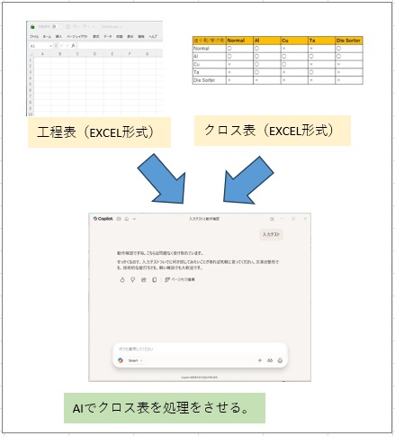 これをエクセルにしたものを、工程表と一緒にAIにアップロードします。