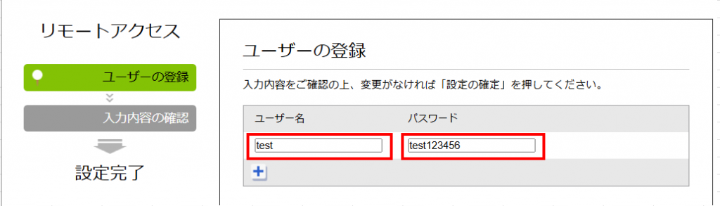 リモートアクセスの最初の画面に戻ると、登録ユーザーの一覧に先ほど登録したユーザーが表示されます。