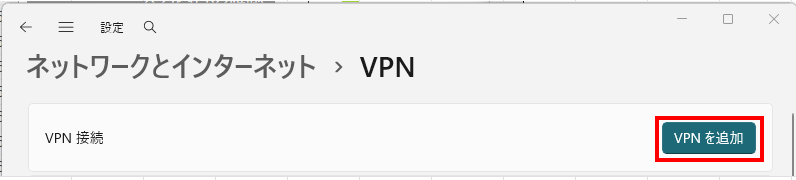 ネットワークとインターネット > VPNの画面のVPN追加ボタンを押下します。